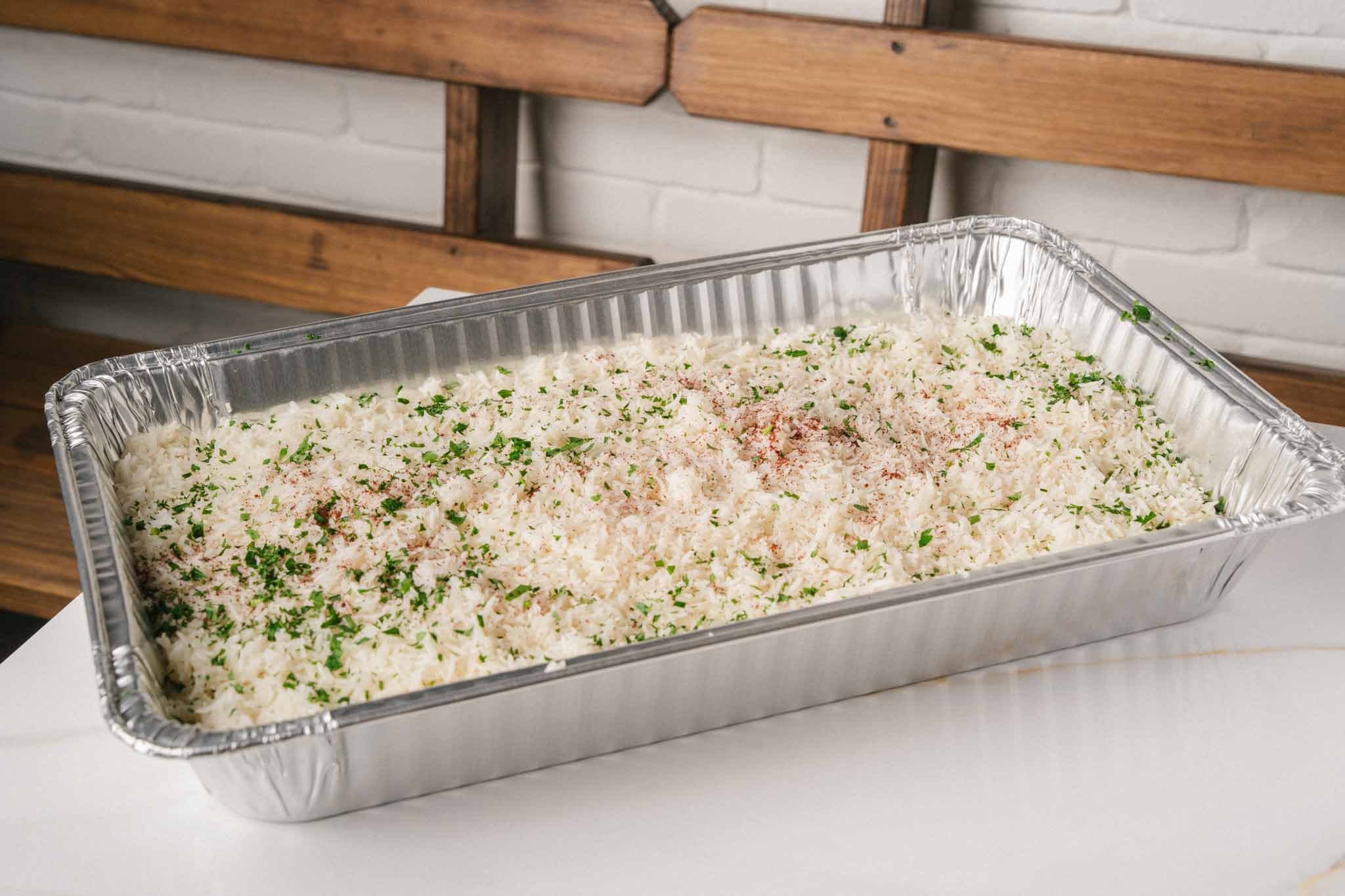 A perfectly cooked side of basmati rice, light and fluffy, to complement any meal.
